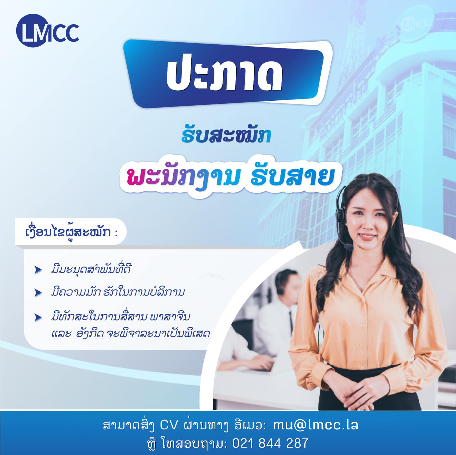 ສະບາຍດີຕອນນີ້ ເບສ ເທເລຄອມ ກຳລັງຊອກຫາເພື່ອນຮ່ວມງານ ພະນັກງານ ຮັບສາຍ ເພື່ອເຂົ້າມາເປັນສ່ວນໜຶ່ງຂອງການຂະຫຍາຍທຸລະກິດ. ທ່ານໃດສົນໃຈສາມາດສາມາດສະໝັກໂດຍສົ່ງ CV ເຂົ້າມາໄດ້ທີ່: recruitment@besttelecom.la ສອບຖາມຂໍ້ມູນໂທ: 021 844 287